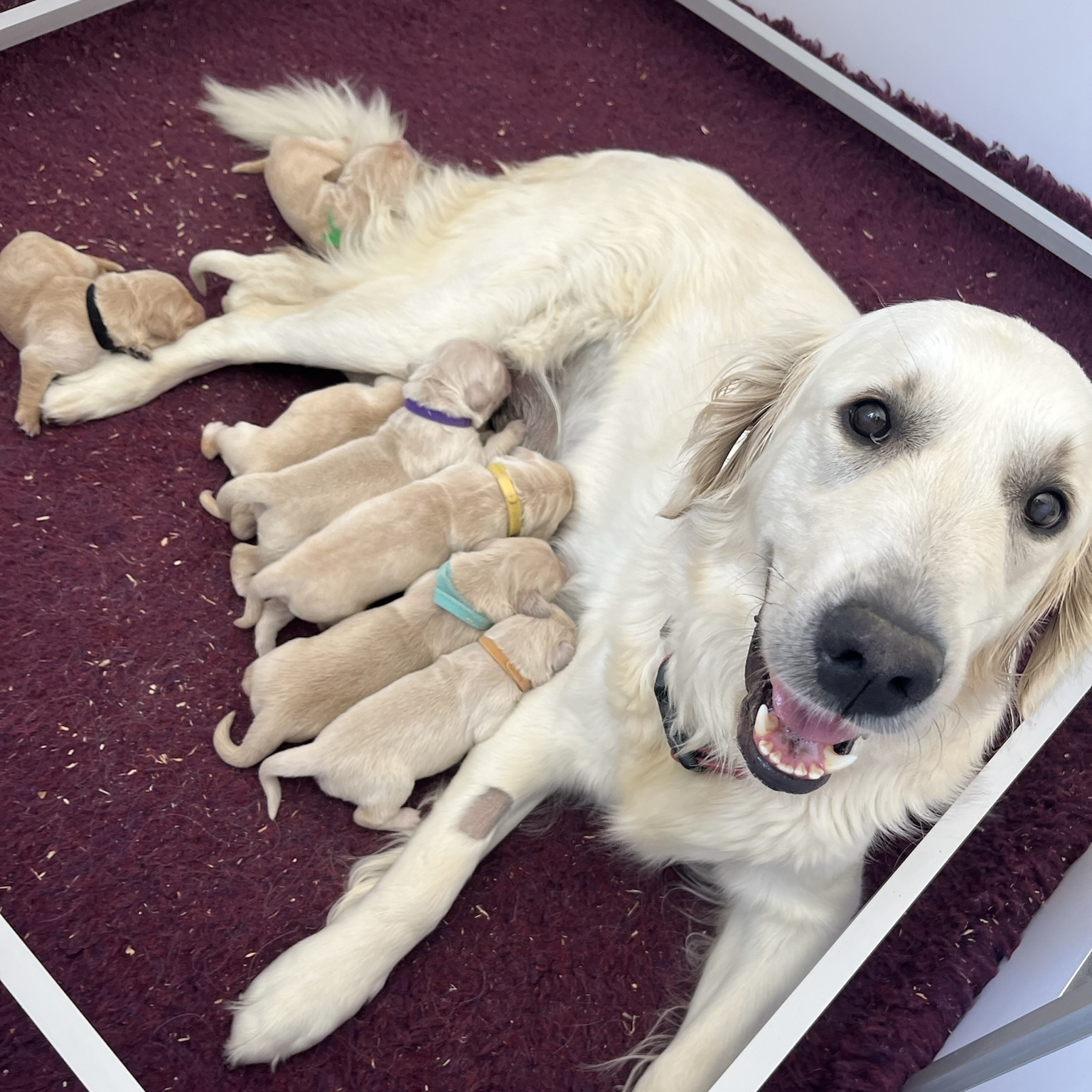 Depuis 2022, nous avons accueilli plusieurs chiennes au sein de la maternité dédiée au projet.